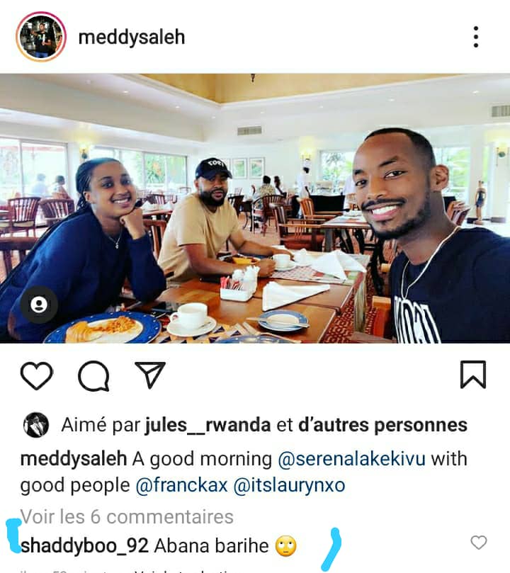 Ni nyuma y’aho Meddy saleh yari yasohokeye ku Kivu aho yagirira ibihe byiza .Ubwo ShaddyBoo yabonaga iyo foto ye yahise amubaza aho yashyize abana, mbese yashakaga kumubaza impamvu atari kumwe n’abana babo.