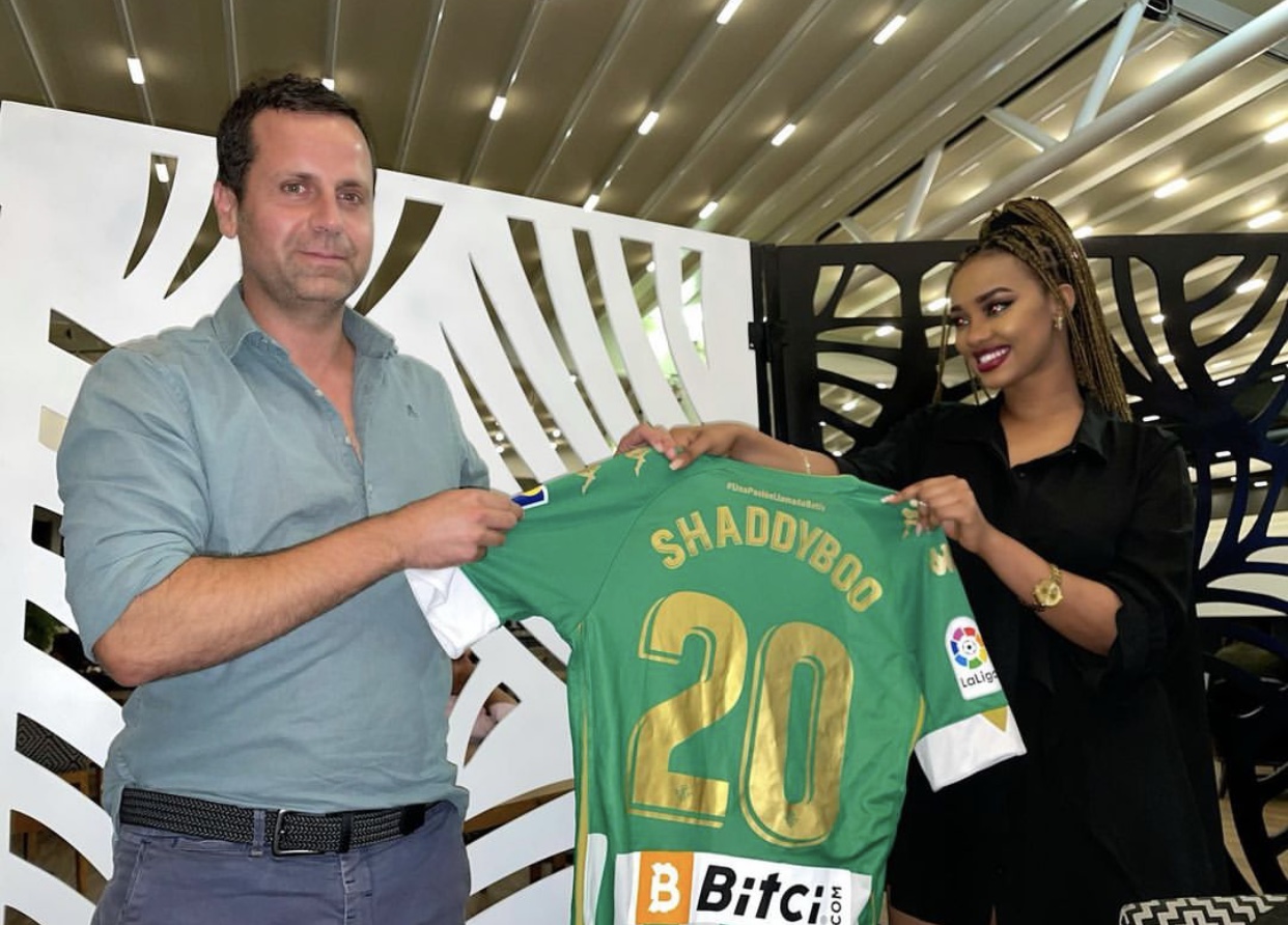 Mbere gato yuko Shaddyboo atangaza aya magambo yari yashyize hanze amafoto agaragaza umwenda w’abakinnyi ikipe ya Real Betis yamukoreye wanditseho izina rye (Shaddyboo).