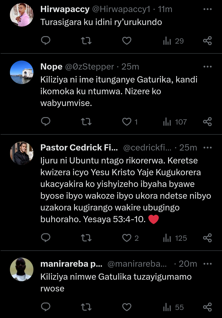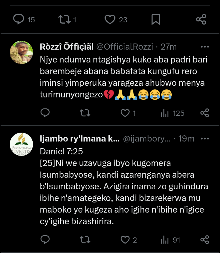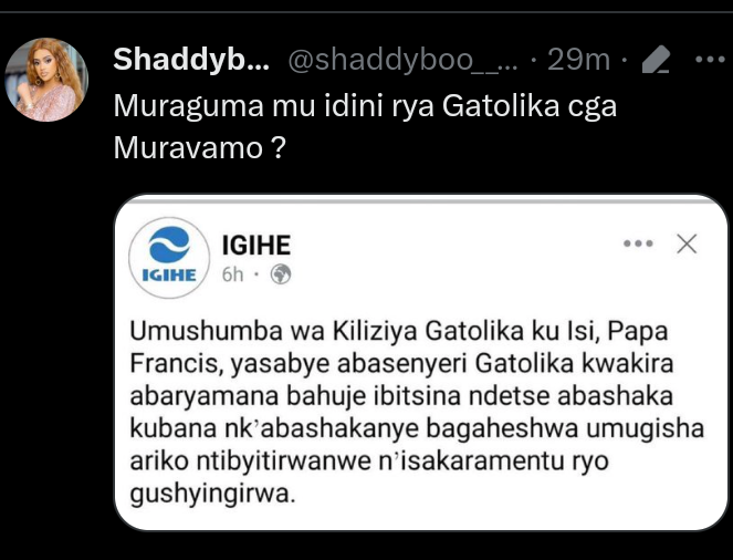 Nyuma yo gukora ibi abakirisitu benshi baratunguwe cyane ariko umunyamideri Mbabazi Shadia uzwi nka Shaddyboo yaje kuri X yahoze ari Twitter abaza abamukurikira ati” Muraguma mu idini rya Gatolika cga muravamo?” Asubizwa ibintu biteye agahinda.