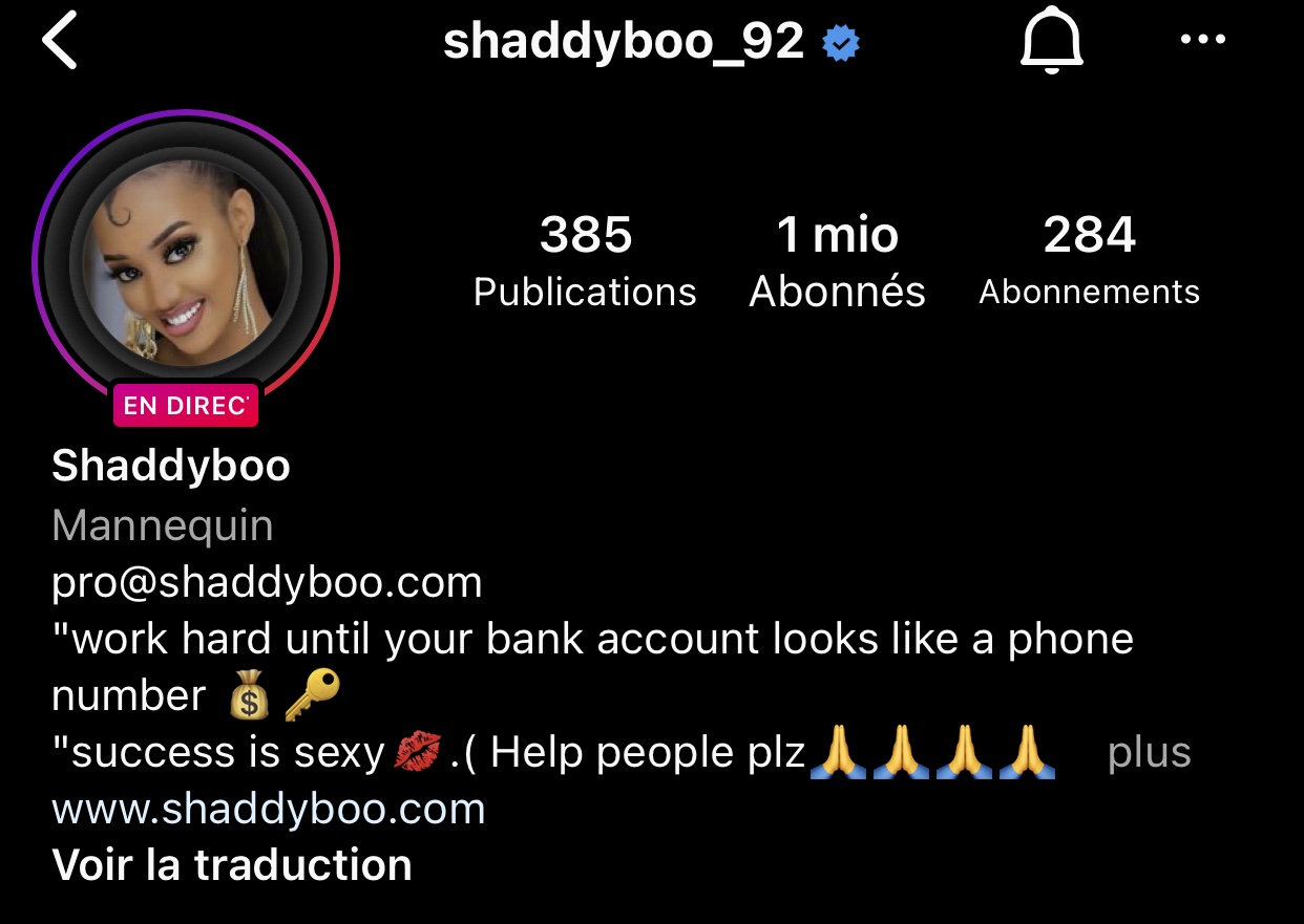 Kuri ubu konti ya instagram ya Shaddyboo ikurikirwa n’abantu basaga miliyoni akaba ari ubwa mbere bibayeho ku munyarwanda.