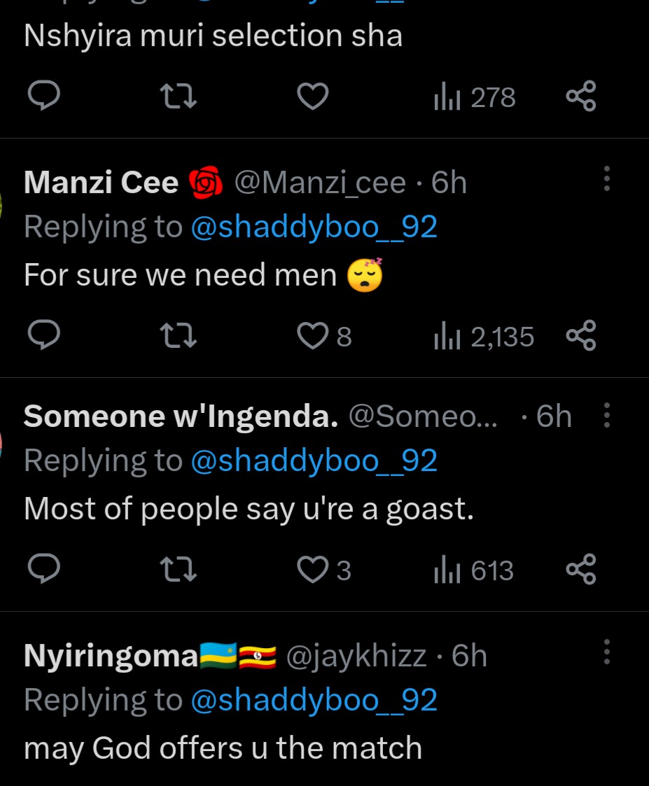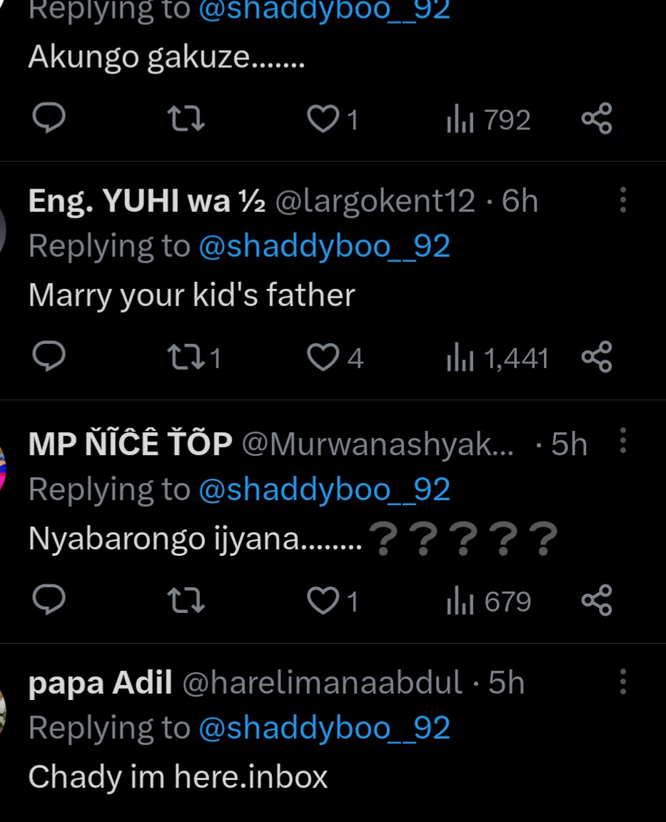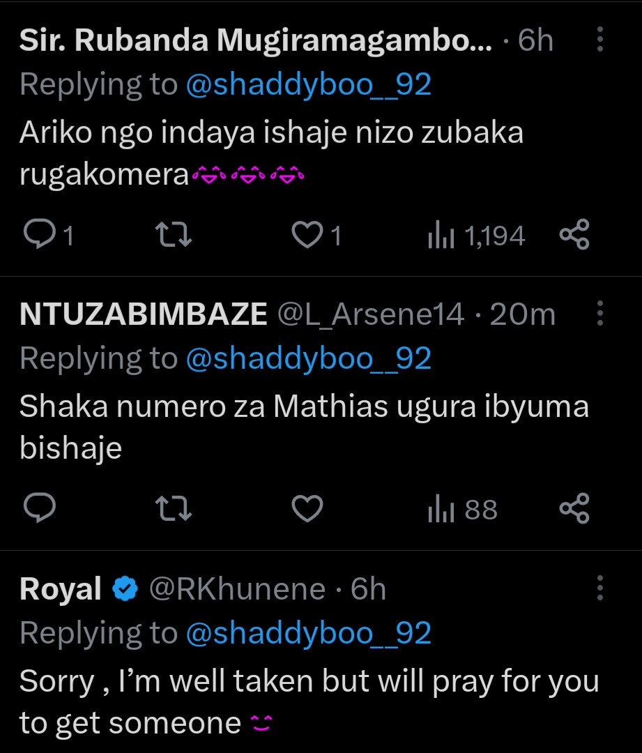 Abinyujije ku rukuta rwe rwa Twitter, Shaddy Boo yavuze ko ashaka uwo bashyingiranwa aho yaje guhita asamirwa hejuru n’abo kuri Twitter.