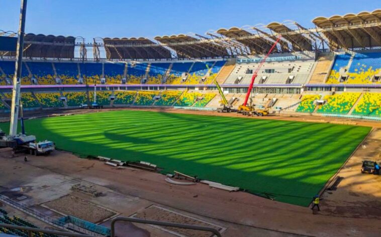 Stade Amahoro irimo kuvugurwa yatangiye gushyirwamo ubwatsi bw’ubukorano bugezweho mvaburayi – AMAFOTO