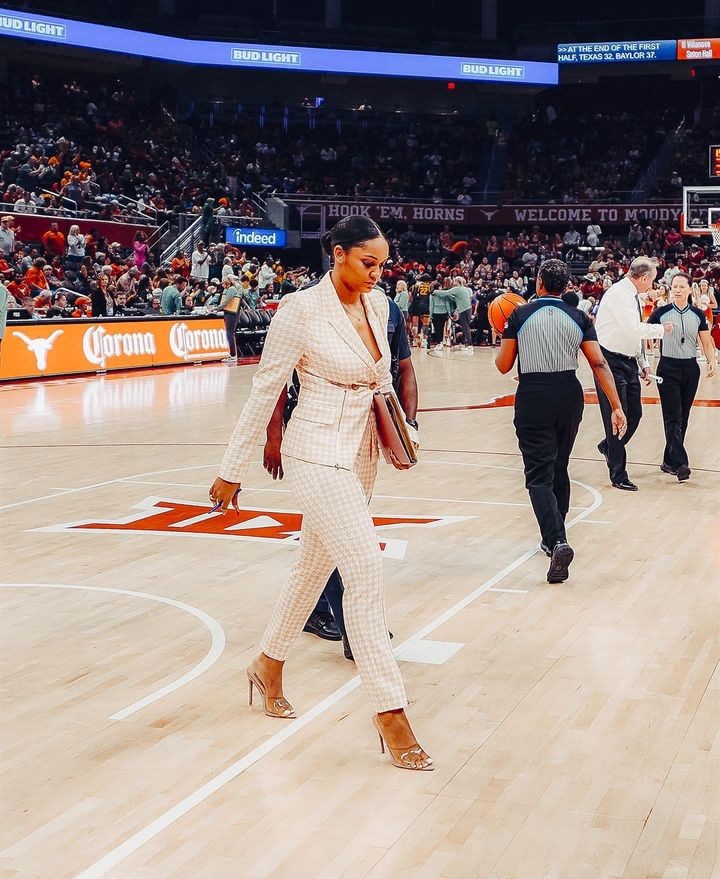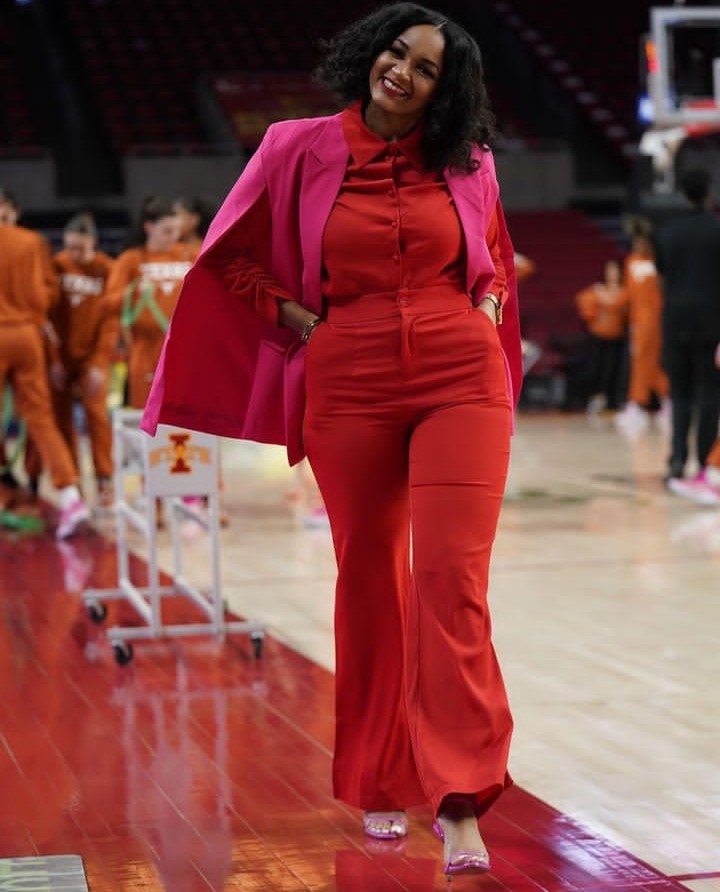 Uyu mugore w’ikimero gikurura abatari bake baza muri stade baje kwirebera ubwiza bwe aho kureba umupira, afite imyaka 32 y’amavuko ni umutoza w’ikipe ya Basketball ya Texas WBBC ikina NCAA Division I, icyiciro gikuru mu byiciro by’amarushanwa y’amashuri.