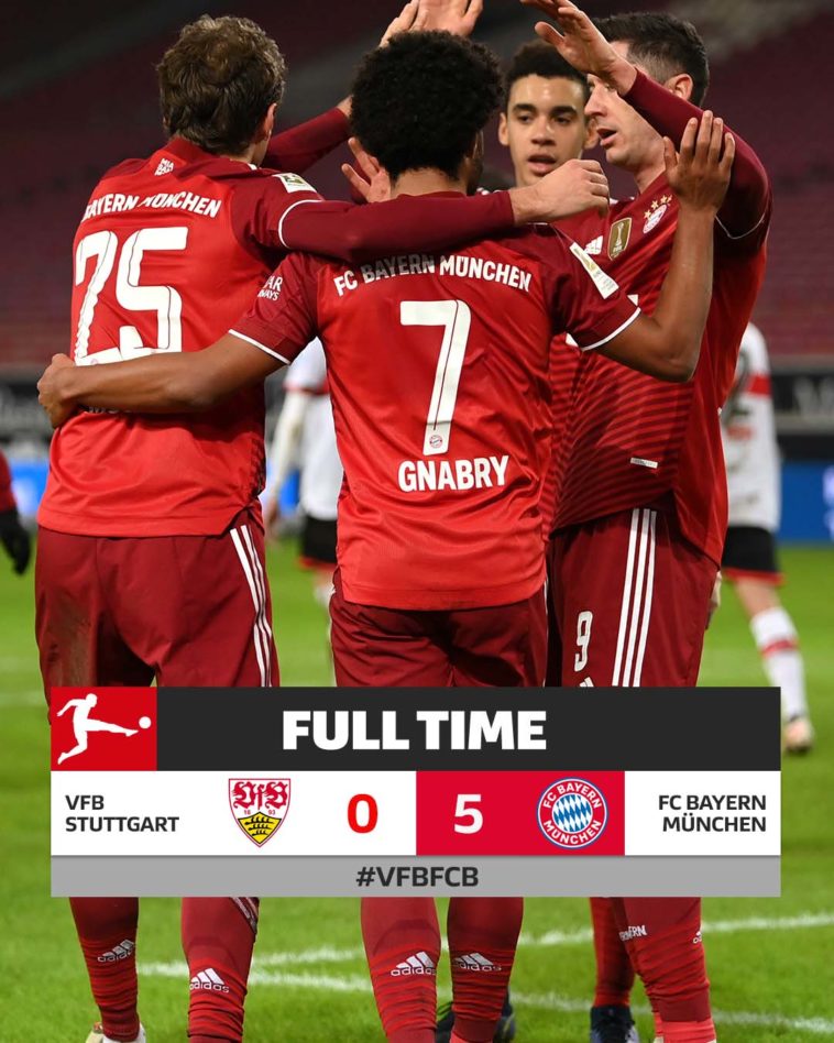 Rutahizamu Serge Gnabry atsinze ibitego bitatu (Hat Trick) maze Robert Lewandowski nawe atsinda ibitego bibiri mu mukino Bayern Munich itsinzemo Stuttgart ibitego 5-0 maze irusha ikipe ya kabiri amanota icyenda muri Bundesliga.