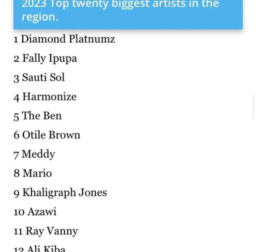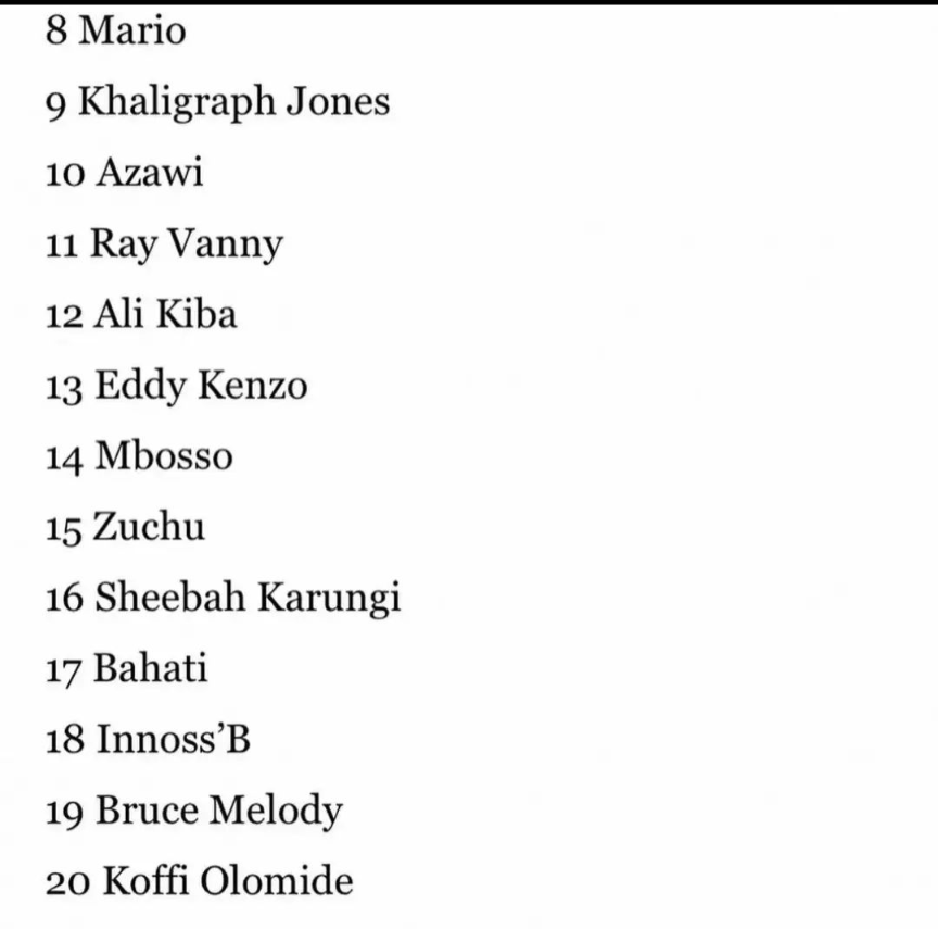 The Ben abayoboje inkoni y’icyuma: Hagaragaye urutonde rw’abahanzi bayoboye abandi muri Afurika y’iburasirazuba (Urutonde)