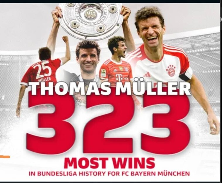 Thomas Muller yujuje insinzi 323 muri Bundesliga mu gihe Manuel Neuer we afite insinzi 322 muri Bundesliga. Uyu mukinnyi w’umudage w’imyaka 34 ukina mu kibuga hagati amaze imyaka 15 akinira ikipe ya Bayern Munich ndetse amaze kuyikinira imikino 449 muri Bundesliga.