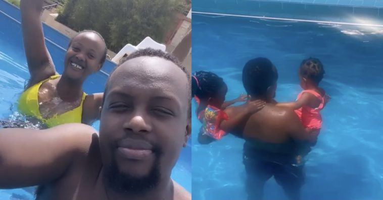 Twabonye Butera Knowless, umugabo we n’abana be barimo koga muri piscine (videos)