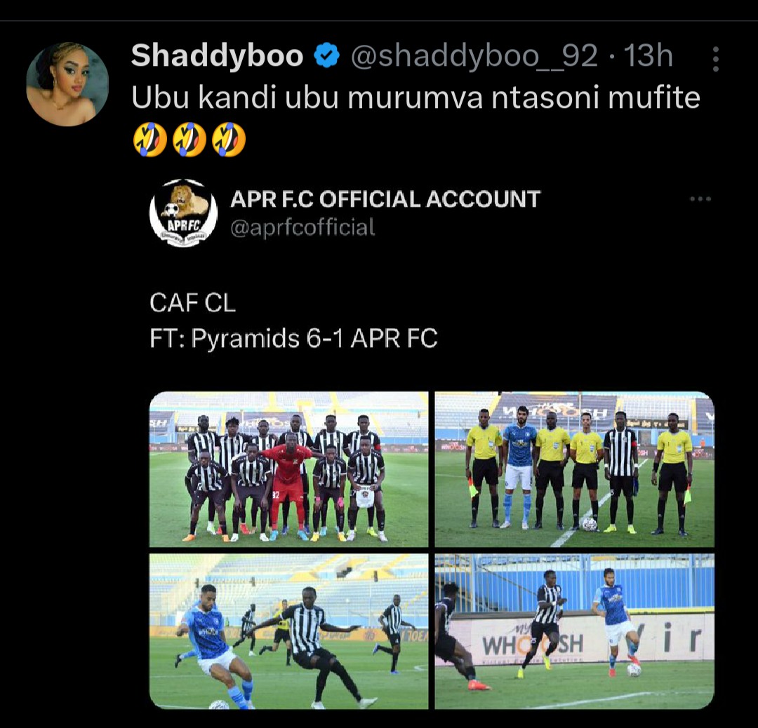 Abinyujije ku rukuta rwe rwa X yahoze yitwa Twitter, Shaddy Boo yatatse APR FC nyuma yo kunyagirwa.