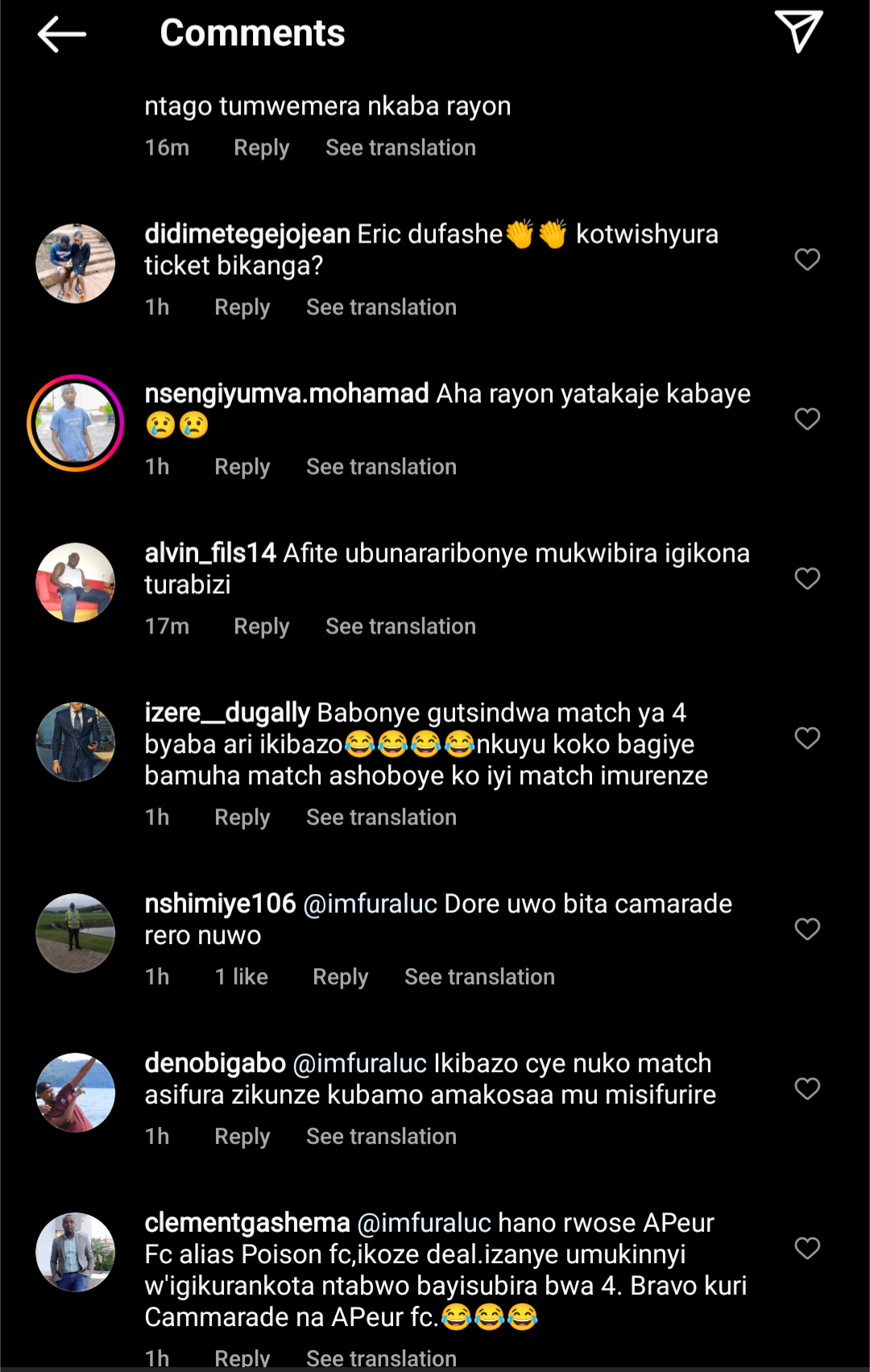 Ubwo umunyamakuru w’imikino Imfura Luck yatangazaga aya makuru abafana ba Rayon Sport bavuze ko bahangayikishijwe n’uyu musifuzi dore ko bari kuvuga ko buri mukino abasifutiye abiba.
