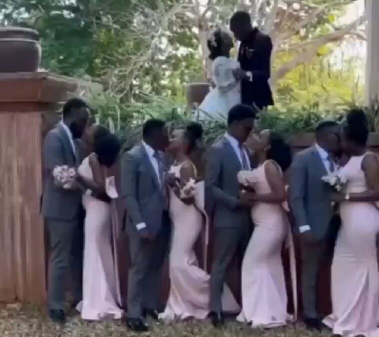 Ubukwe ni ubu! Abambariye umusore n’umukobwa banyatanye umunwa ku w’undi nyuma yo kubona ko abageni bari kubikora (Videwo)