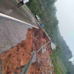 Amashusho agaragaza ibiri kuba ku modoka zitwara abagenzi ubwo ziri kuba zigeze ku muhanda Huye-Nyamagabe wangiritse