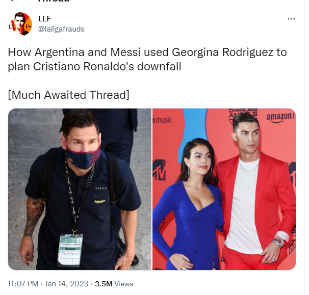 Uwiyise Laliga Frauds yashyize ku rubuga rwa twitter uko umugore wa Cristiano Ronaldo Georgina Rodriguez yakoreshejwe mu kurangiza ,umwuga wa Cristiano wo gukina umupira w’amaguru no gutakaza agaciro nk’umukinnyi wa mbere ku isi.