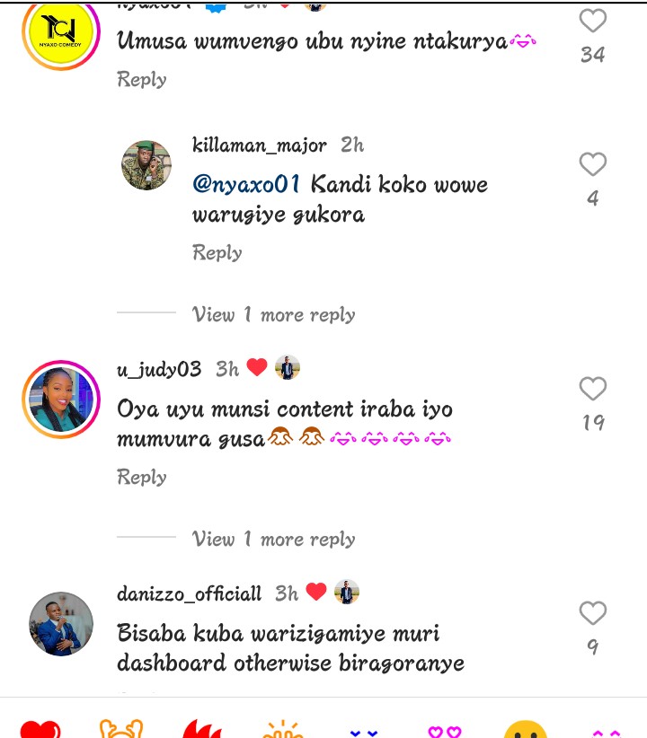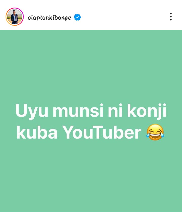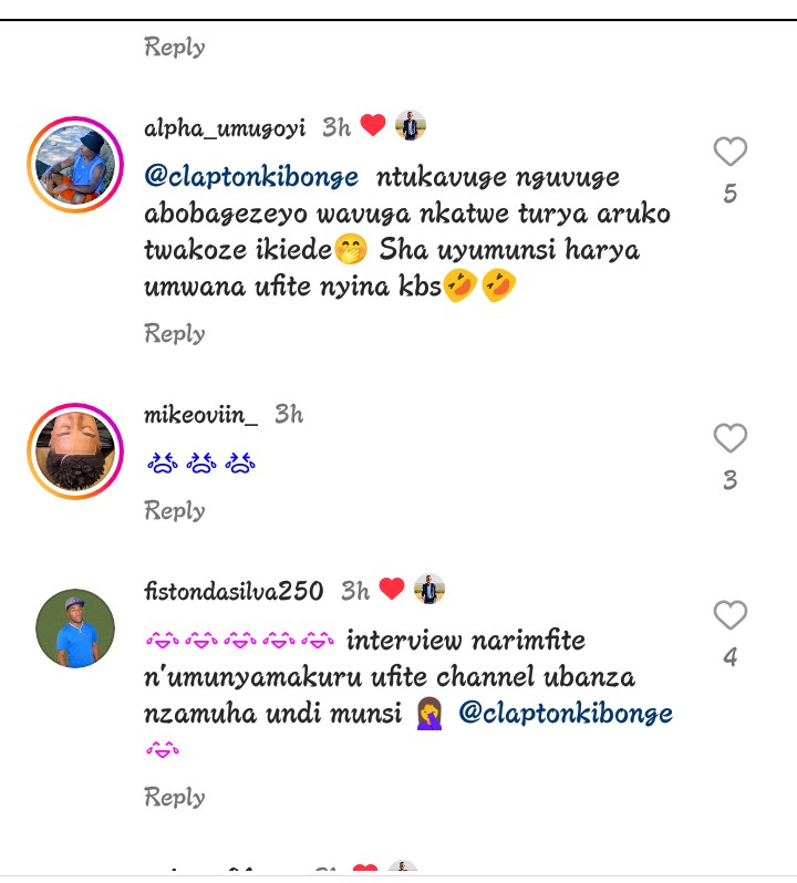 Clapton Kibonke yagize utya apostinga kuri Instagram ye agira ” Uyu munsi ni konji kuba YouTuber 😂”. Bagenzi be barimo Nyaxo, Papa Sava, Killa man, n’abandi bahise bamusubiza mu bimbere.