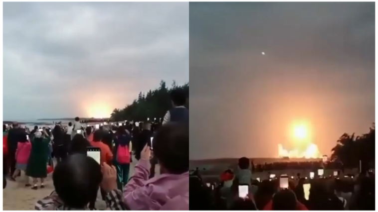 Mu mashusho yasakaye ku mbugankoranyambaga yerekana imbaga y’Abashinwa batangaye barimo gufotora ubwo uku kwezi koherezwaga mu kirere.