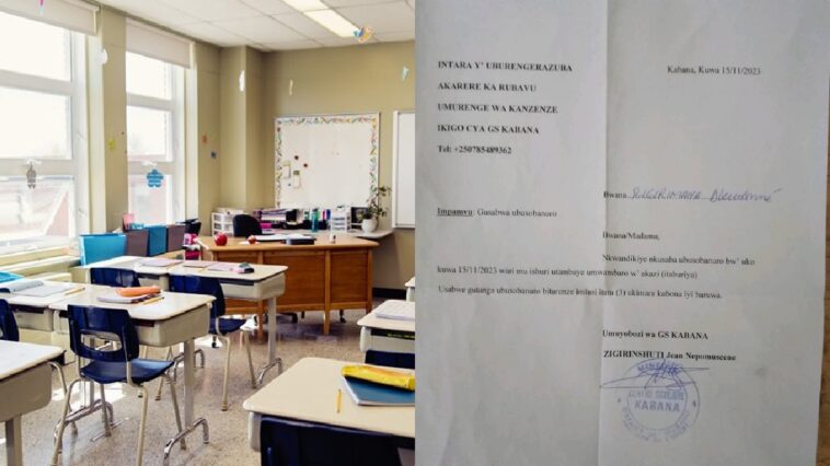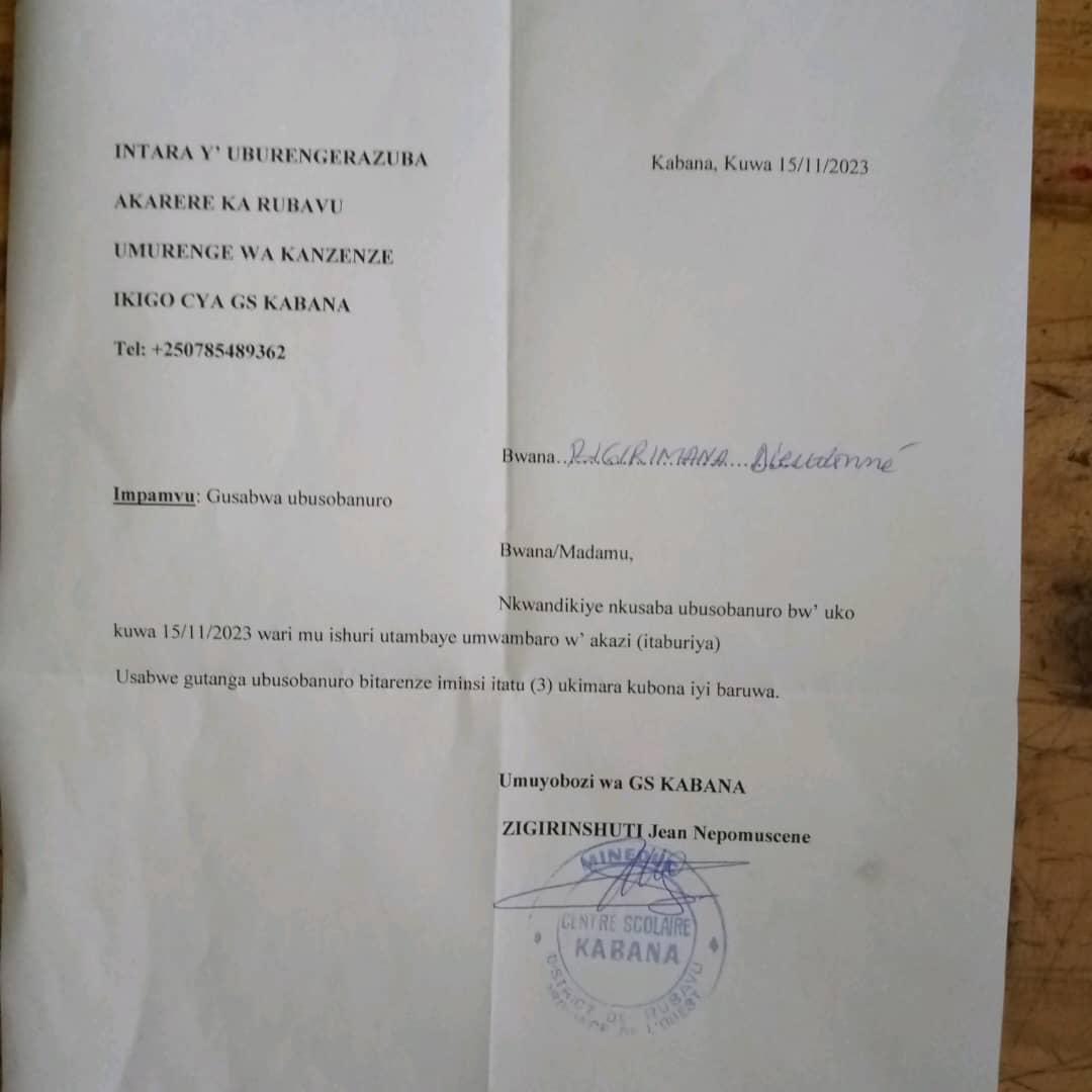 Umwarimu witwa Bigirimana Dieudonne wigisha ku kigo cya G.S Kabana mu murenge wa Kanzenze mu karere ka Rubavu, yandikiwe ibaruwa n’ubuyobozi bw’ikigo bumusaba gutanga ubusobanuro bitarenze iminsi itatu ngo asobanure ku myambarire yagaragaye yambaye imbere y’abanyeshuri yigishaga.