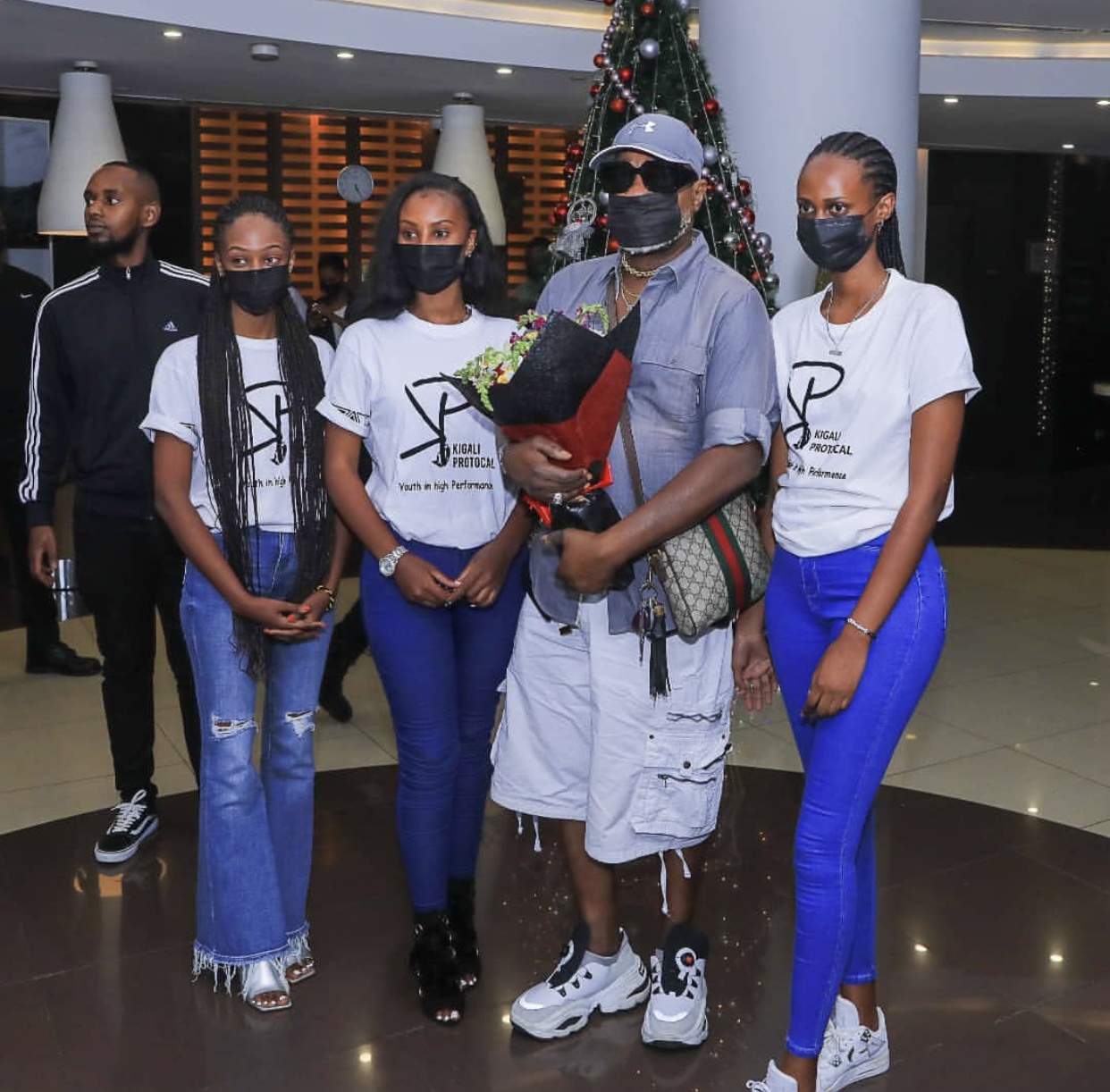 Akigera i Kigali, Koffi Olomide yakiriwe n’abakobwa beza, aba bakobwa bakaba bari mu itsinda rya Kigali Protocal risanzwe ryakira abantu batandukanye b’ibyamamare ndetse rikanakora protocole mu birori bitandukanye.