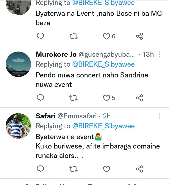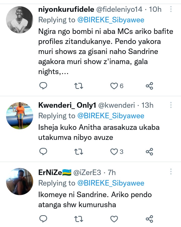 Benshi bahurije ku kuba Anitha Pendo yarakwiriye kuyobora ibirori by’iganjemo urubyiruko, ni mugihe Sandrine we ngo yaba azobereye mu gukora ibirori bitandukanye ariko birimo abanyacyubahiro cyangwa bisaba ubwitonzi.
