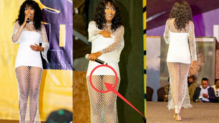 Umuhanzikazi Alyn Sano yatunguye abitabiriye Seka Live yo kuri iki cyumweru, aza yambaye imyenda igaragaza akenda k’imbere yari yambaye.
