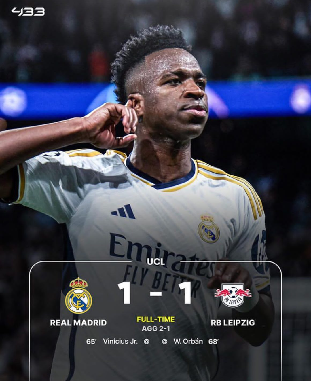 Mu ijoro rya cyeye imikino ya 1/8 muri Uefa Champions League yakomezaga ikipe ya Real Madrid yari yakiriye ikipe ya RB Leipzig umukino urangira amakipe yombi anganyije igitego 1-1 byatumye Real ikatisha itike yo kwerekeza muri 1/4 kubera ko umukino ubanza yari yatsinze igitego 1-0 ikaba yakomeje kugiteranyo cy’ibitego 2-1.