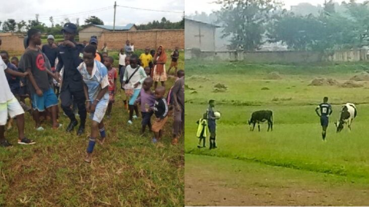 Mu mukino wahuje Miroplast na Impeesa, wagaragayemo agashya ubwo abashumba bagiye kuragira babisikana n’abatoza bari guha abakinnyi amabwiriza, inka zirisha zinyuranamo n’abakinnyi bashaka ibitego.