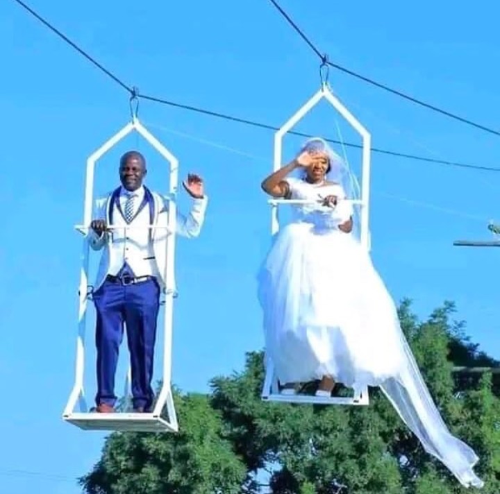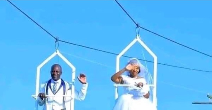 Udushya turagwira koko! Umusore n’inkumi bakoze ubukwe maze bagaragara bari kugendera mu kirere – Reba ifoto