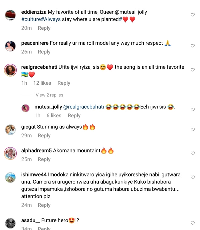 Miss Bahati Grace wabaye Nyampinga w’u Rwanda muri 2009 yeretse Miss Jolly ko yishimiye ijwi rye nyuma yo kumwumva agenda aririmba indirimbo ya Cecile Kayirebwa yitwa Tarihinda.