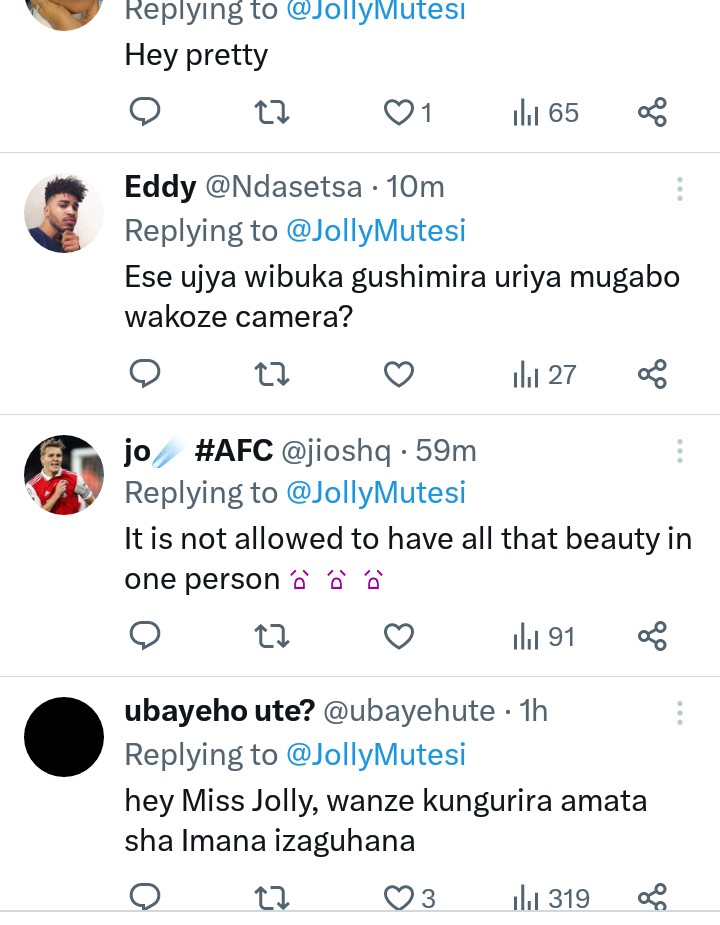 Mutesi Jolly benshi bakomeje kugaruka ku bwiza bwe kuko ifoto yasangije ni imwe mu mafoto meza afite. Ndetse bamwe batangiye kumubonamo ibyiza nyaburanga bitatse uRwanda.