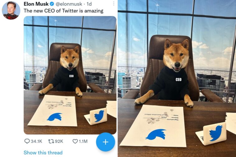 Uko imbwa ya Elon Musk yazamuwe mu ntera ikagirwa umuyobozi mukuru w’urubuga rwa Twitter.