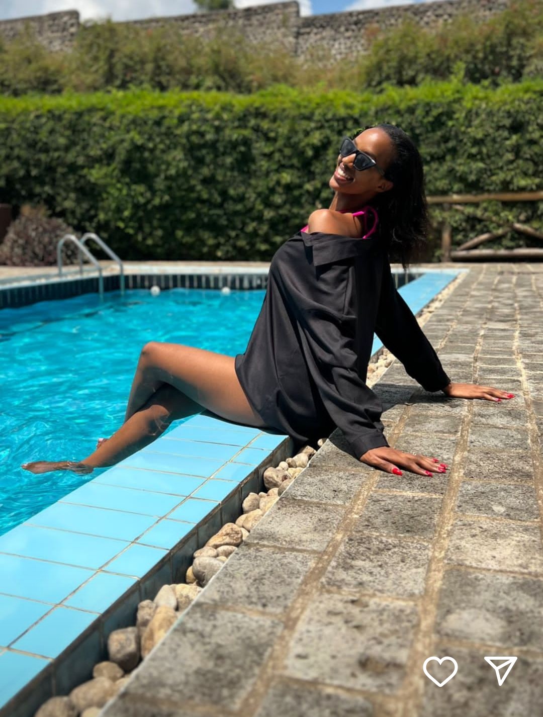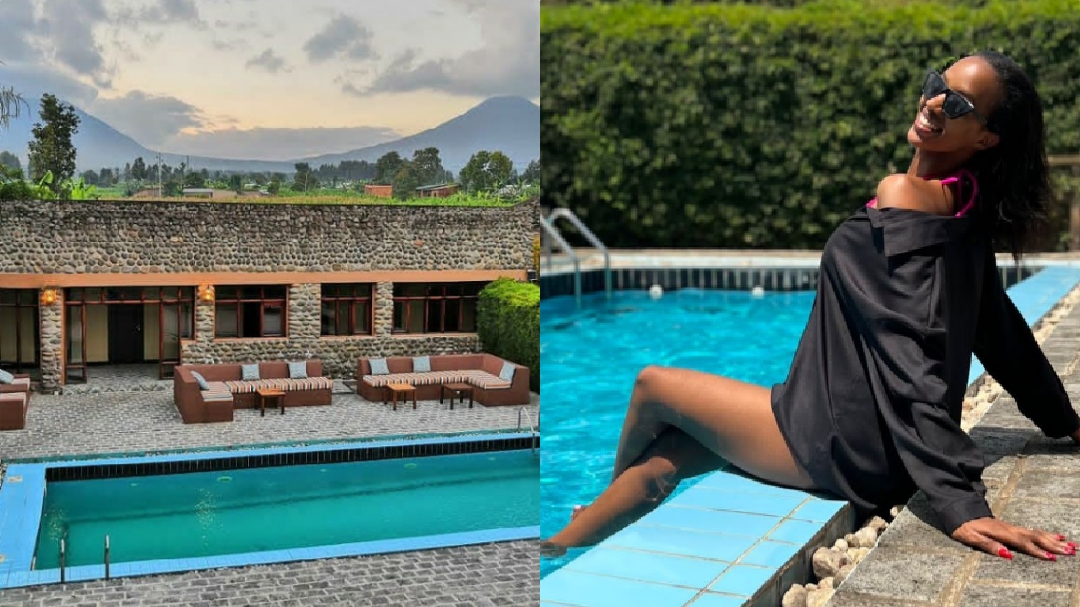 Ukwa buki kwabaye uburyohe! Miss Iradukunda Elsa wa Prince Kid bari mu kwezi kwa Buki muri Lodge ifite na Pisine.