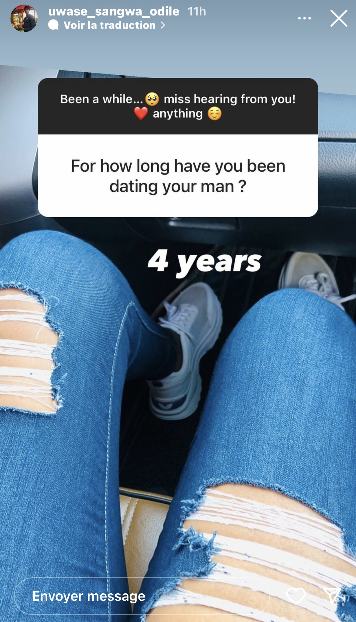 Ni nyuma yuko umwe mu bafana bakurikira Odile kuri instagram yari amubajije igihe amaze akundana n’umusore bari kumwe niko guhishura ko bamaranye imyaka ine.