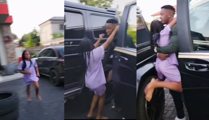 Ni Amashusho akomeje gucicikana ku mbuga nkorambaga zitandukanye uyu mwana w’umukobwa aza yiruka aje kureba umugabo wa mama wabo.