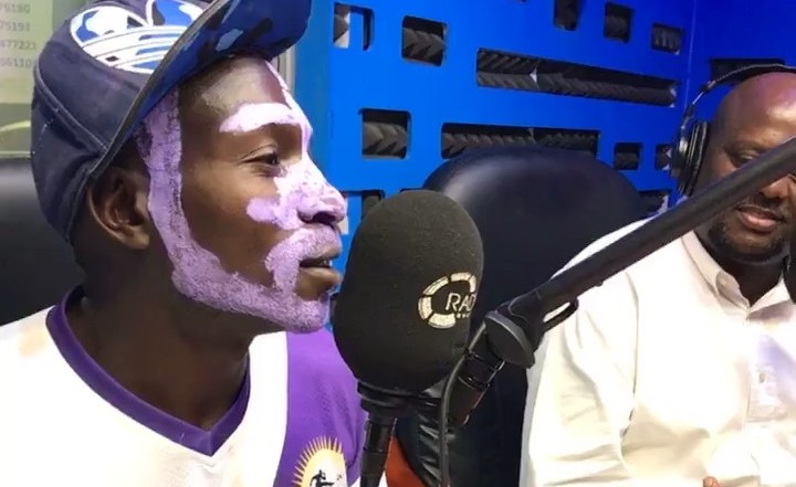 Gikona yakanze abafana ba Rayon Sports bitewe n’uko yaje yambaye kuko yaje muri studio za radiyo Rwanda yisize amarange y’ikipe ye, afite ingoma ndetse yitwaje n’indangururamajyi.