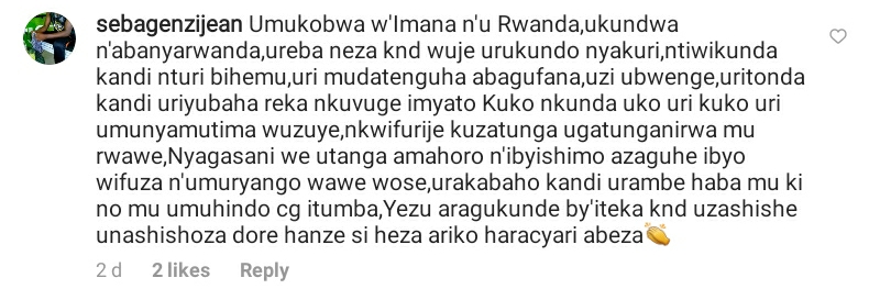 Umwe mu bafana b’umuhanzikazi Clarisse Karasira uherutse kwambikwa impeta  n’umukunzi  we, yamuteye imitoma idasanzwe ndetse amwifuriza ibyiza byose.Ni nyuma y’aho uyu mukobwa ashyize ifoto  ye kuri Instagram maze akabaza abafana be uko bumva bamerewe muri ibi bihe bya gahunda ya Guma mu Rugo.Nibwo umwe mu bafana be yahise amutaka bishyira cyera.