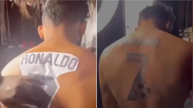 Umufana wa Cristiano Ronaldo utuye mu gihugu cy’Ubuhinde witwa Parthiban w’imyaka 37 yakoze ibidasanzwe yishyiraho igishushanyo (tattoo) ku mugongo kiriho umubare Cristiano Ronaldo asanzwe yambara mu kibuga ndetse n’amazina ye.