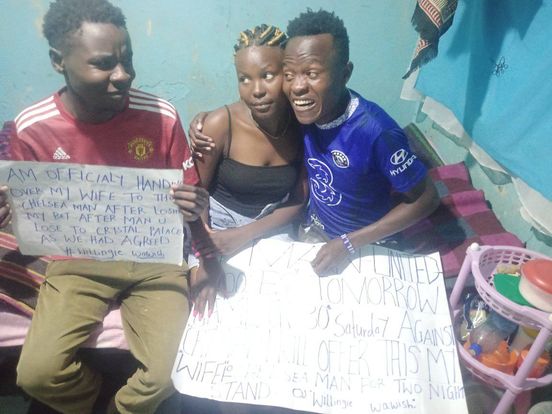 Nkuko yabitangaje, Willingie Wawish ufana Chelsea yahawe umugore na mugenzi we ufana Manchester United nyuma yo kumutsinda ku ntego bari bagiranye.
