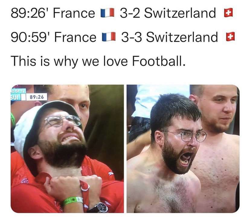 Nyuma y’uyu mukino hacicikanye amafoto y’umufana w’ikipe y’Ubusuwisi ubwo yaririraga muri stade igihe Ubufaransa bwari bumaze gutsinda Ubusuwisi ibitego 3 kuri 2. Hashize igihe kitageze ku munota umwe, uyu mufana yahise akuramo imyenda yose yishimira intsinzi y’ikipe ye nyuma yuko inganyije n’Ubufaransa ibitego 3 kuri 3.