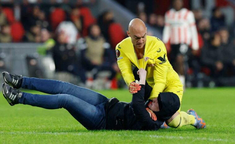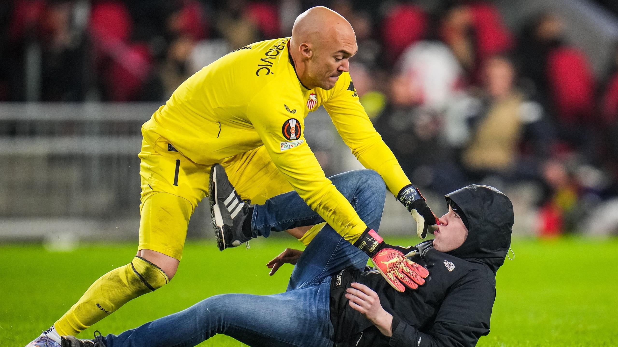 Umufana w’imyaka 20 wo mu Buhorandi yahawe ibihano bikakaye azira kuba yarinjiye mu kibuga agakubita umuzamu wa Sevilla muri Europa League.