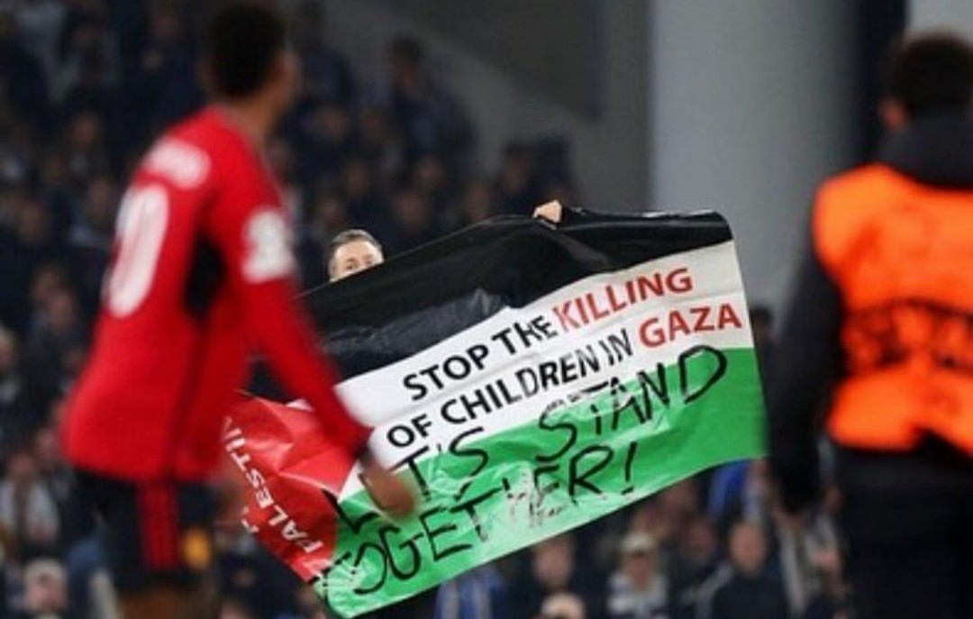 Umufana yinjiye mu kibuga mu mukino hagati wa Manchester United na Copenhagen maze aha Israel ubutumwa bukomeye cyane.