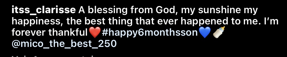 Abinyujije ku rukuta rwe rwa instagram, Clarisse yashyize hanze amafoto ye ari kumwe na Mico The Best ndetse n’umwana wabo maze ayaherekesha amagambo akurikira: