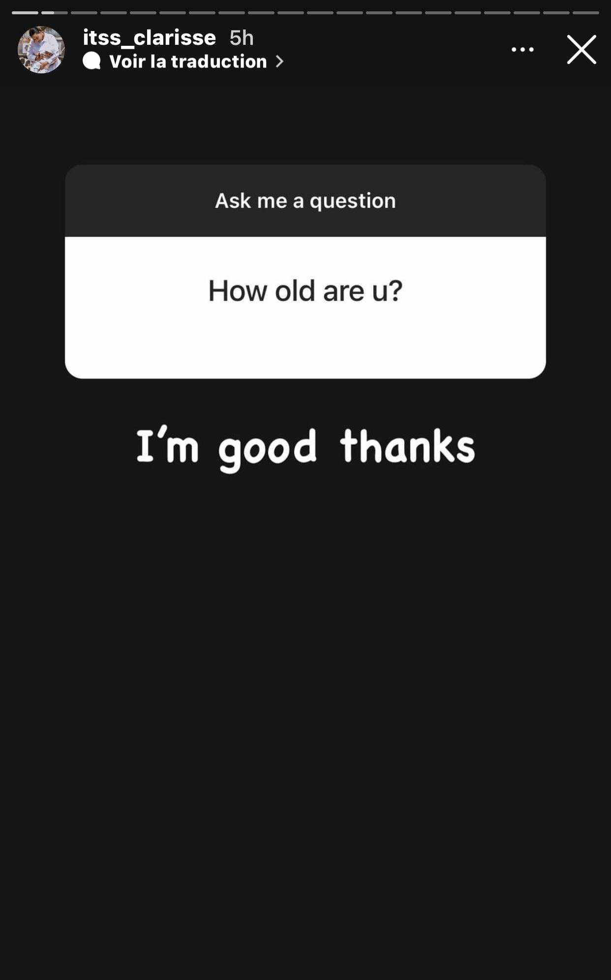 Bimwe mu bibazo byabajijwe n’abafana ba Clarisse byagarukaga ku myaka ye gusa Clarisse ntabwo yigeze abasubiza ngo ababwira imyaka ye.