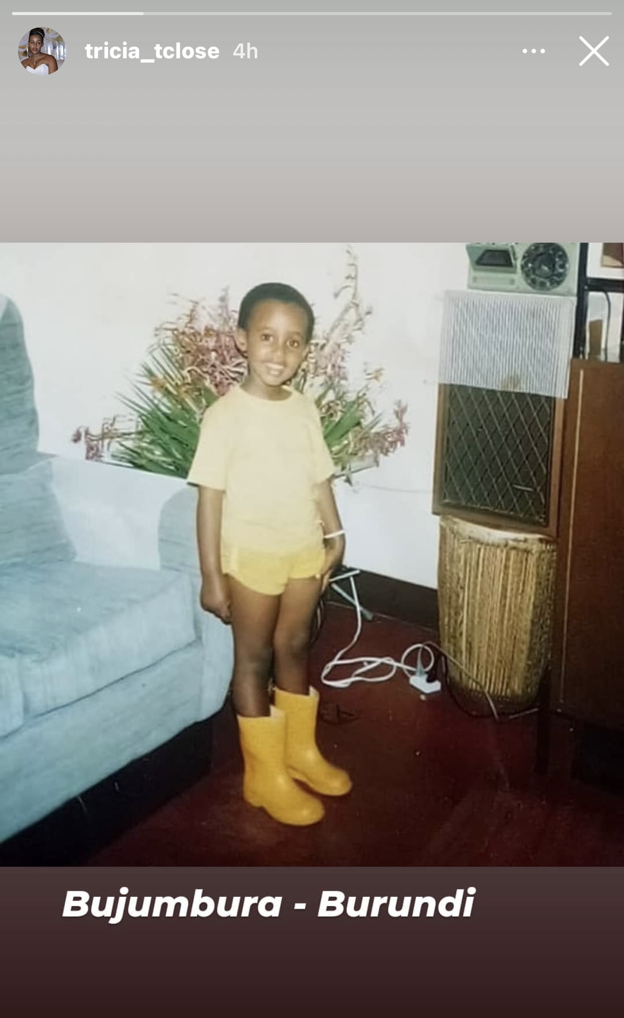 Abinyujije kuri story ya instagram ye, Tricia yashyize hanze ifoto ye ya kera. Ni ifoto iteye ubwuzu. Iyo foto ni iyi ikurikira:
