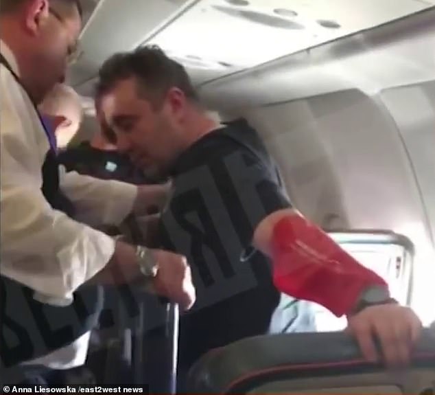 Uyu mugabo yahambiriwe mu ntebe hakoreshejwe imigozi yahambirijwe mu gatuza ndetse n’amaboko yombi. Amakuru avuga ko ubwo iyi ndege yageraga aho yari yerekeje uyu mugabo yahise atabwa muri yombi n’abapolisi.