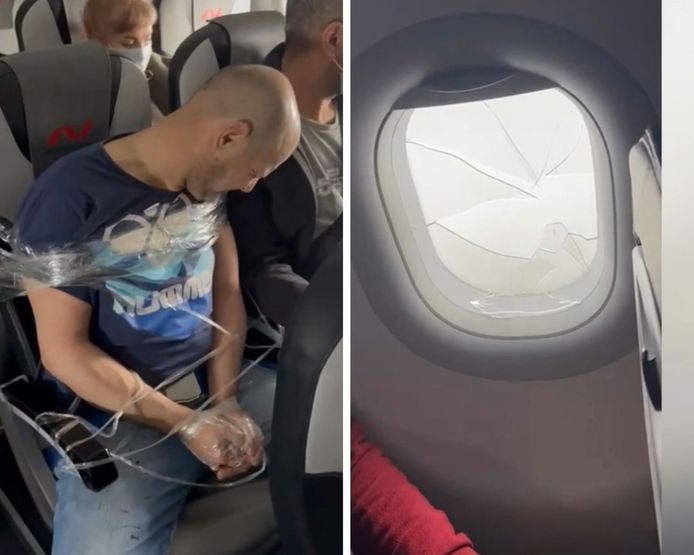 Mu mashusho yafatiwe muri iyi ndege uyu mugabo yari arimo, yamwerekanye ahambiriye ku ntebe abagenzi bicaraho yahinnye ijosi, anasinziriye ubona ko akifitemo isindwe, nyuma yo kugerageza kumena ikirahure cy’idirishya ry’indege yari yicayemo.