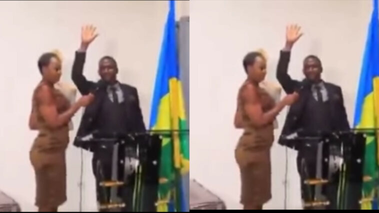 Kuri ubu hongeye kugaragara undi mugabo wagiye gusezerana, ubwo bamubwiraka kuzamura akaboko yahise atera indirimbo mu murenge kandi yari asabwe kuzamura akaboko ngo arahire.