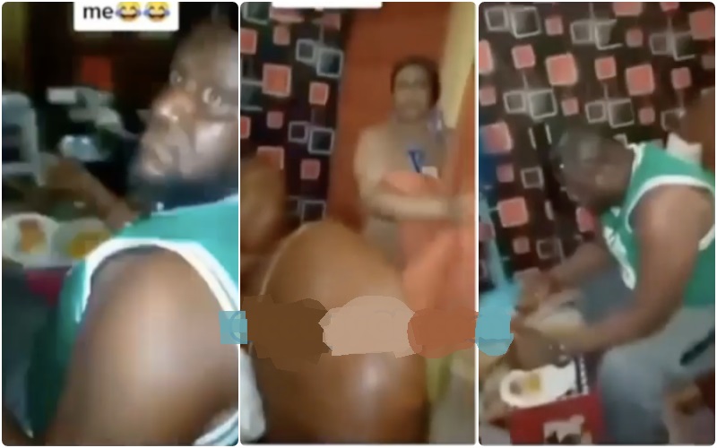Muri iyo videwo,yashyizwe hanze n’uwitwa ijeomadaisy kuri instagram igaragaramo uyu mugabo yinjira mu nzu iwe maze agasanga undi mugabo mugenzi we yiteretse ibyo kurya asangira n’umugore wa nyir’urugo baryohewe n’amafunguro.Ibi bikaba byatuma uyu mugabo ahita arakara atangira gutukana.