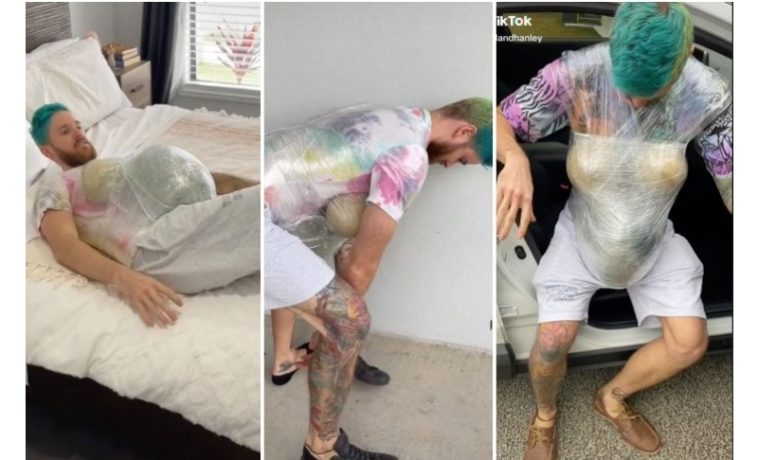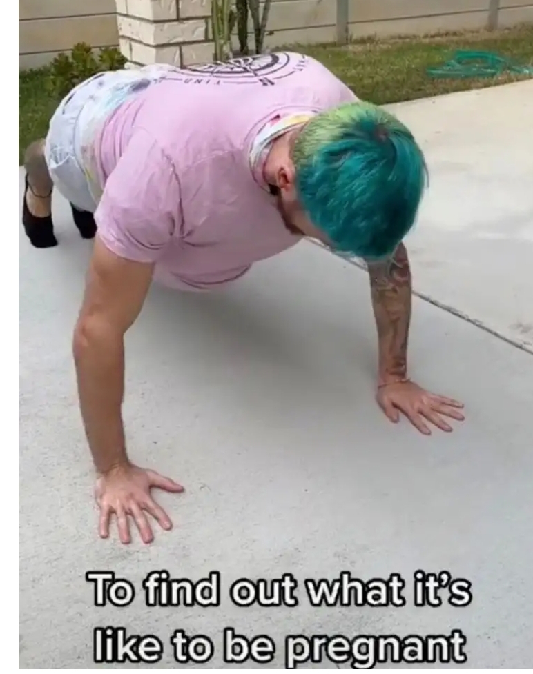 Uyu mugabo witwa Maitland Hanley usanzwe amenyerewe ku mbuga za youtube na Tik Tok yashyize hanze amashusho agaragaza ameze nkumugore utwite ,kugira ngo abikore yafashe ikintu gikoze nkumwana uri munda kandi gifite uburemere buri mu rugero rumwe nubw’umugore utwite aba atwaye ku mubiri we.Nkuko byatangajwe nabaganga mu by’ubuzima bwumuntu burya umugore ukuriwe aba amaze kwiyongeraho ibiro hagati ya 9 na 12 ,bivuze ko uyu mugabo na we yakoze ikintu gipima ibi biro.arangije acyomeka ku nda ye.