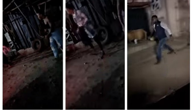 Muri iyo videwo, abadamu bashoboraga kubona biruka mu gihe uyu mugabo nawe agaragara atoragura amabuye hasi akajugunya abadamu biruka.