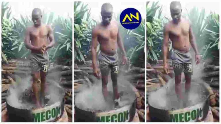 Umugabo wo mu gihugu cya Ghana yasize benshi mu rujijo myuma yo kwemera ko bamucanira mu mazi yari ateretse hejuru y’umuriro ugurumana ntiyashya.