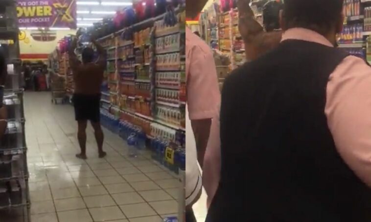 Umugabo mu gihugu cya Africa y’Epfo yikuye imyenda asigarana akenda k’imbere atangira gukarabira mu isoko (super market) akoresheje amazi agurishwa ku bakiriya bagannye ir’isoko .