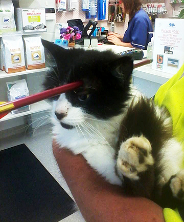 291013 Supplied / HUTT NEWS Shot: Wainuiomata cat Moo Moo is recovering well after emergency surgery to remove a crossbow bolt from his head.